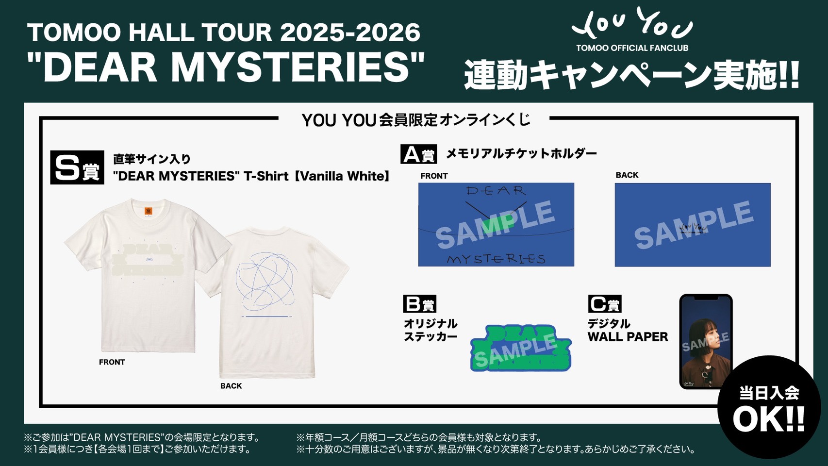 ※"DEAR MYSTERIES" Memorial Ticketは各会場限定カラー1種のみ、会場限定販売となります。